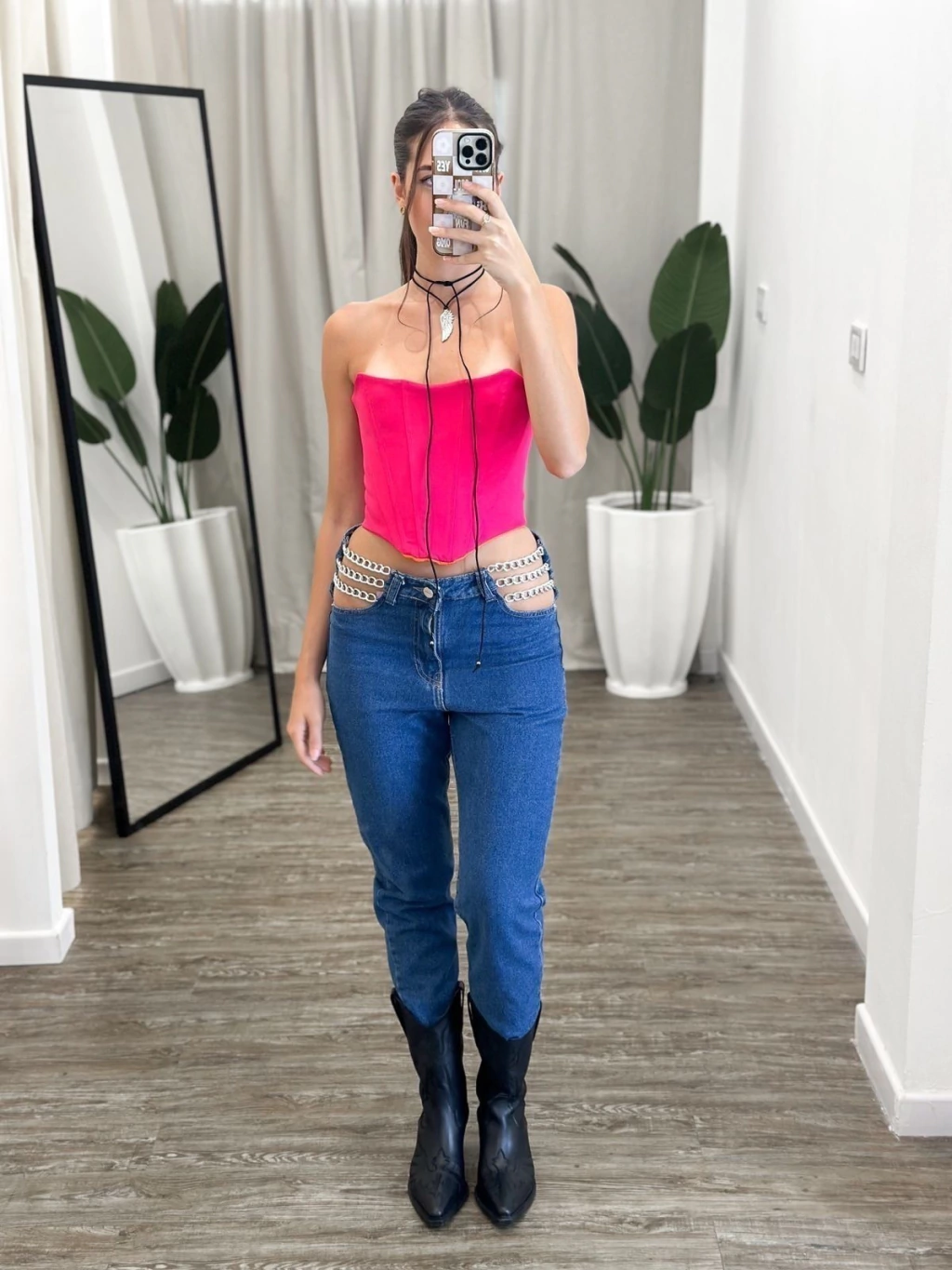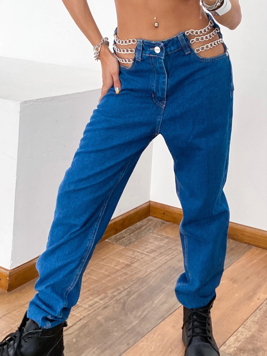 🤍 Las cadenas en la cintura añaden un toque de rebeldía y estilo único. Fabricado con tela rígida de alta calidad, este jean te ofrece durabilidad y un aspecto atemporal.